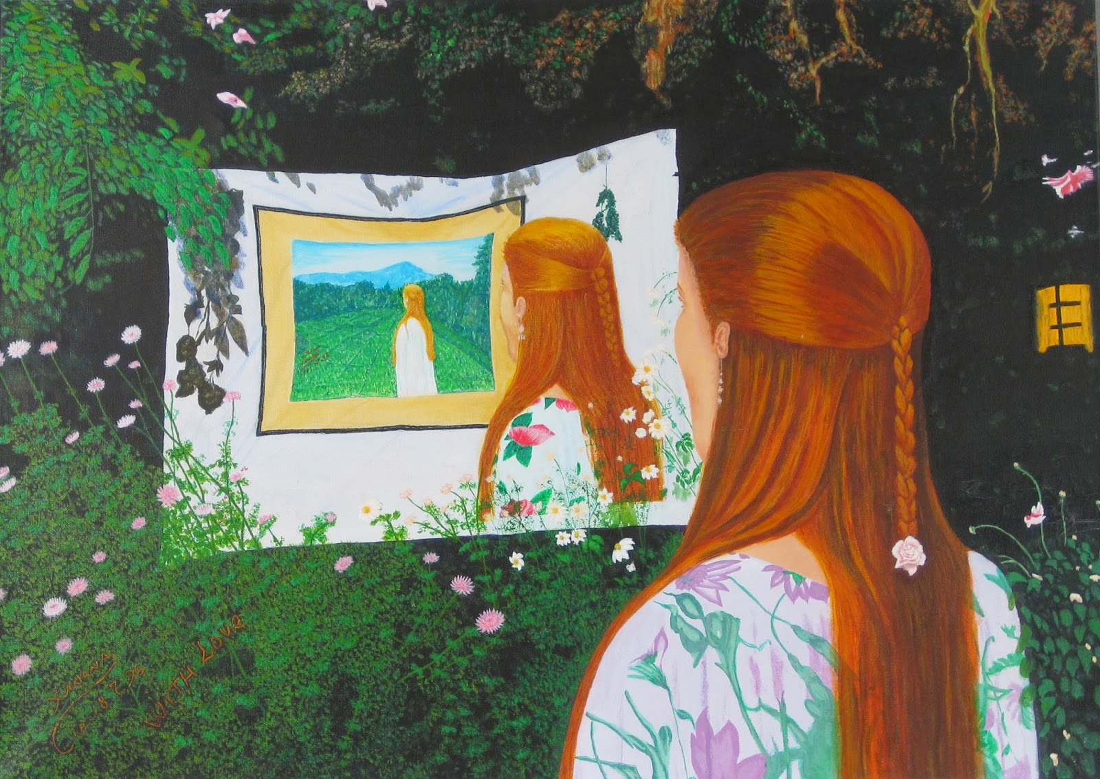 this by painting Kirsty from behind looking into a mirror, creating a new image